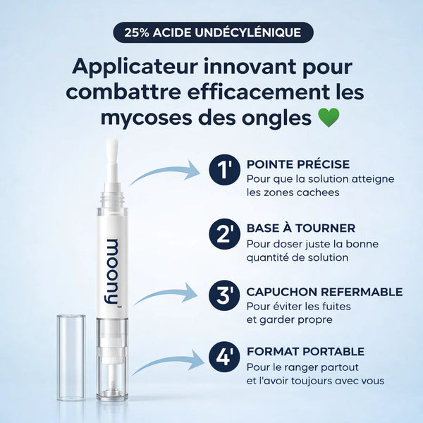 Appliquez directement sur l'ongle et la cuticule et laissez sécher. Utiliser une à deux fois par jour pour des résultats visibles en 2–4 semaines.